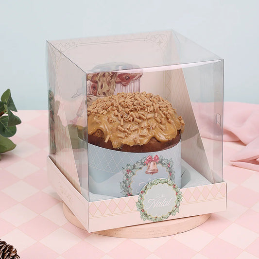 Caixa para Panetone 500g com Tampa de Acetato Doce Natal (5 unidades)