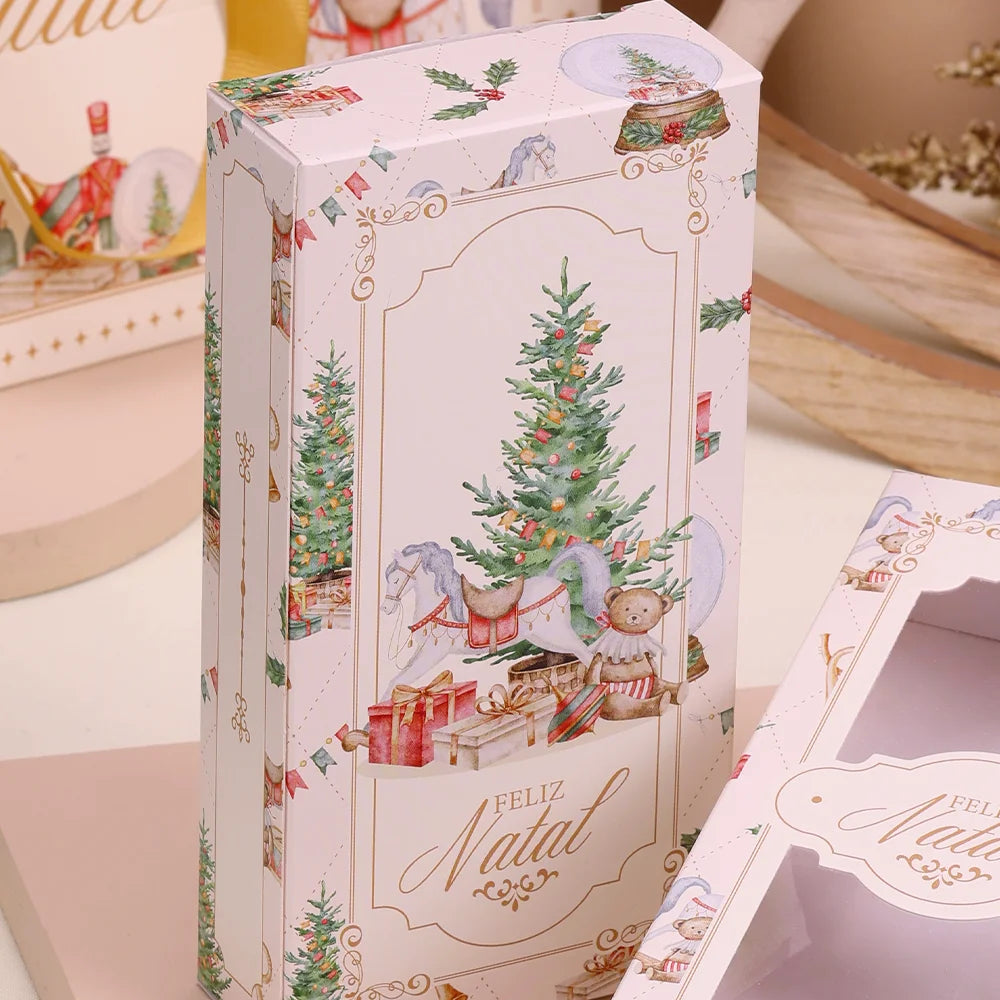 - Fabricada em papel cartão, garantindo boa estrutura e proteção.
