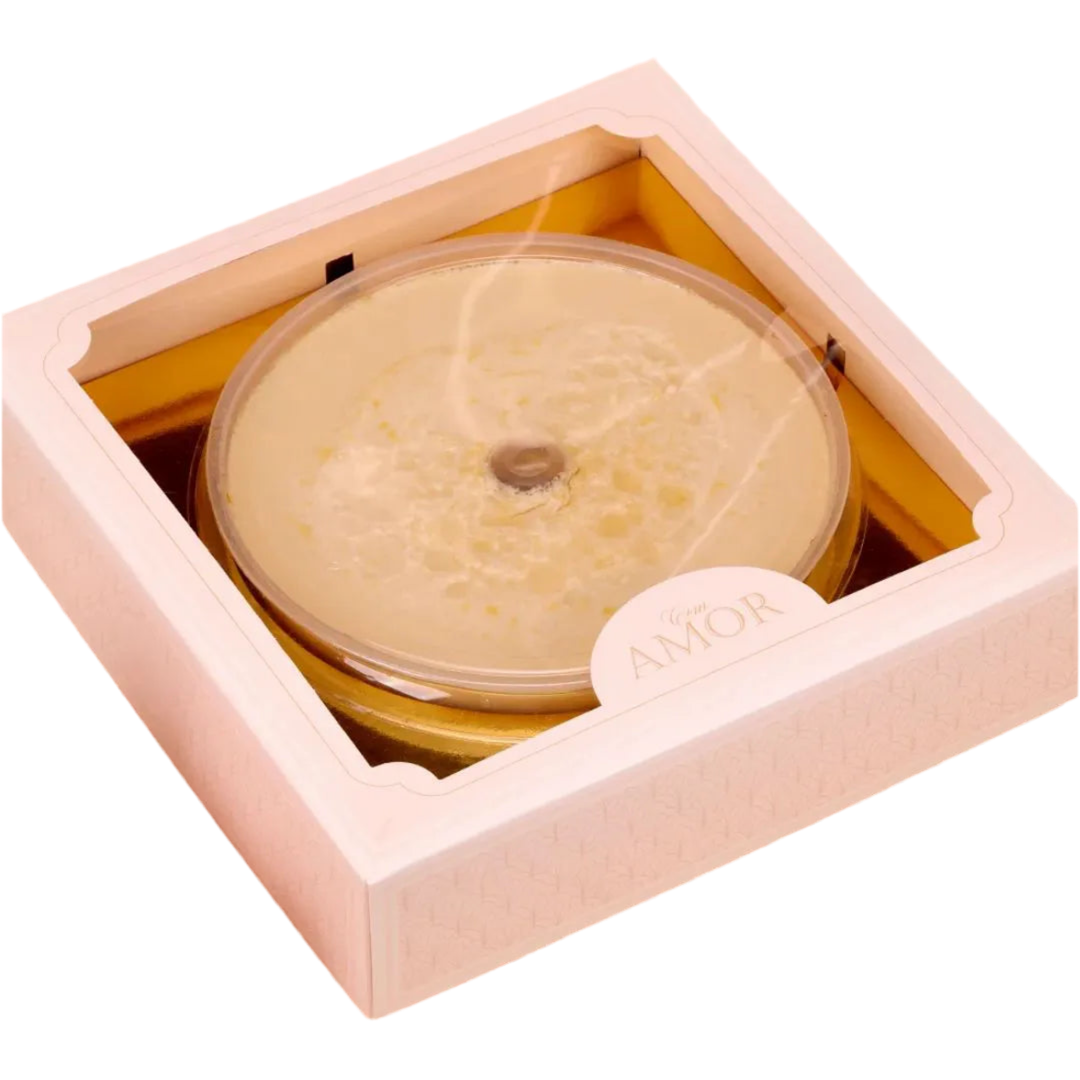 - Possui um berço dourado para firmar a embalagem do pudim;